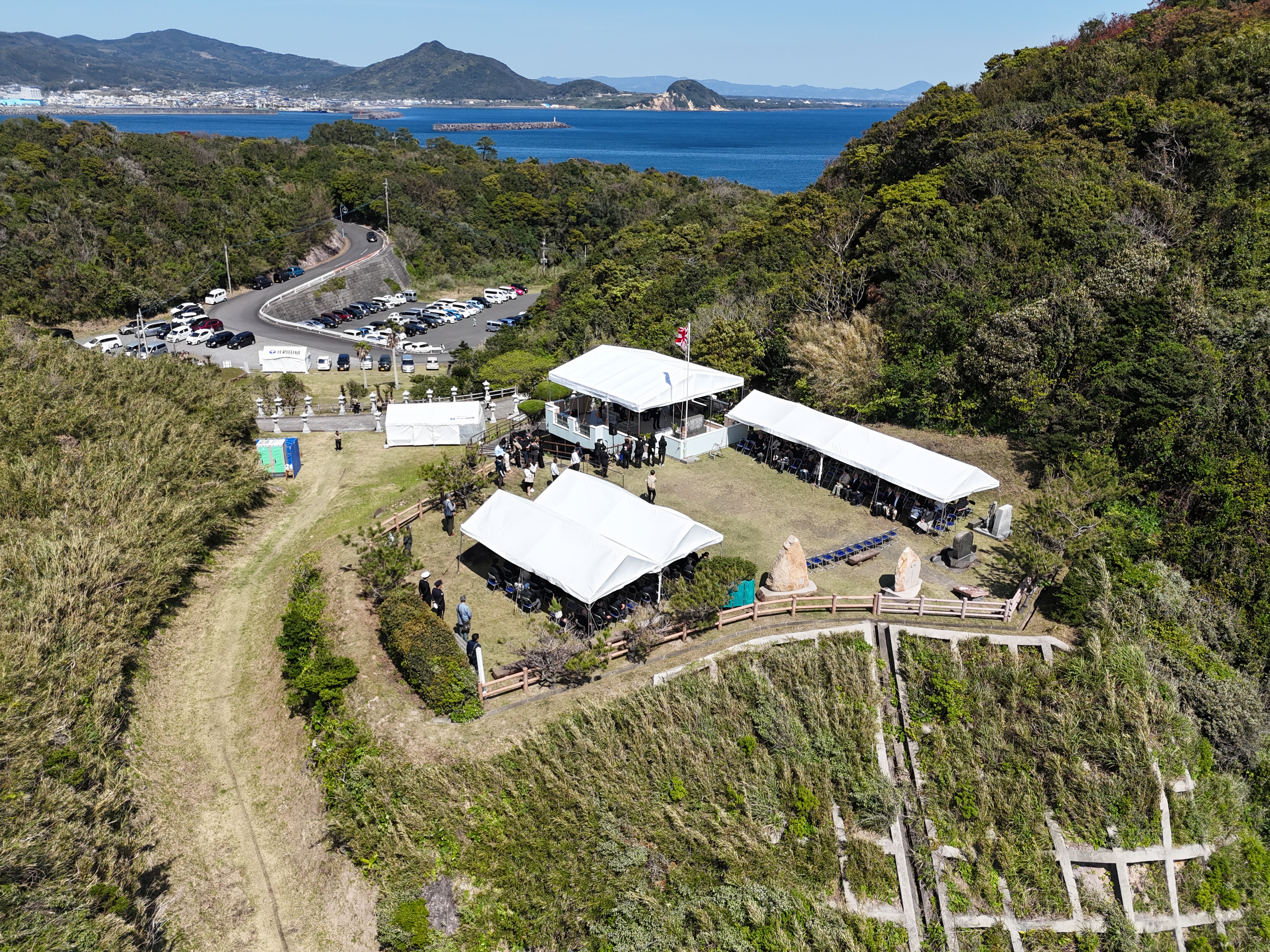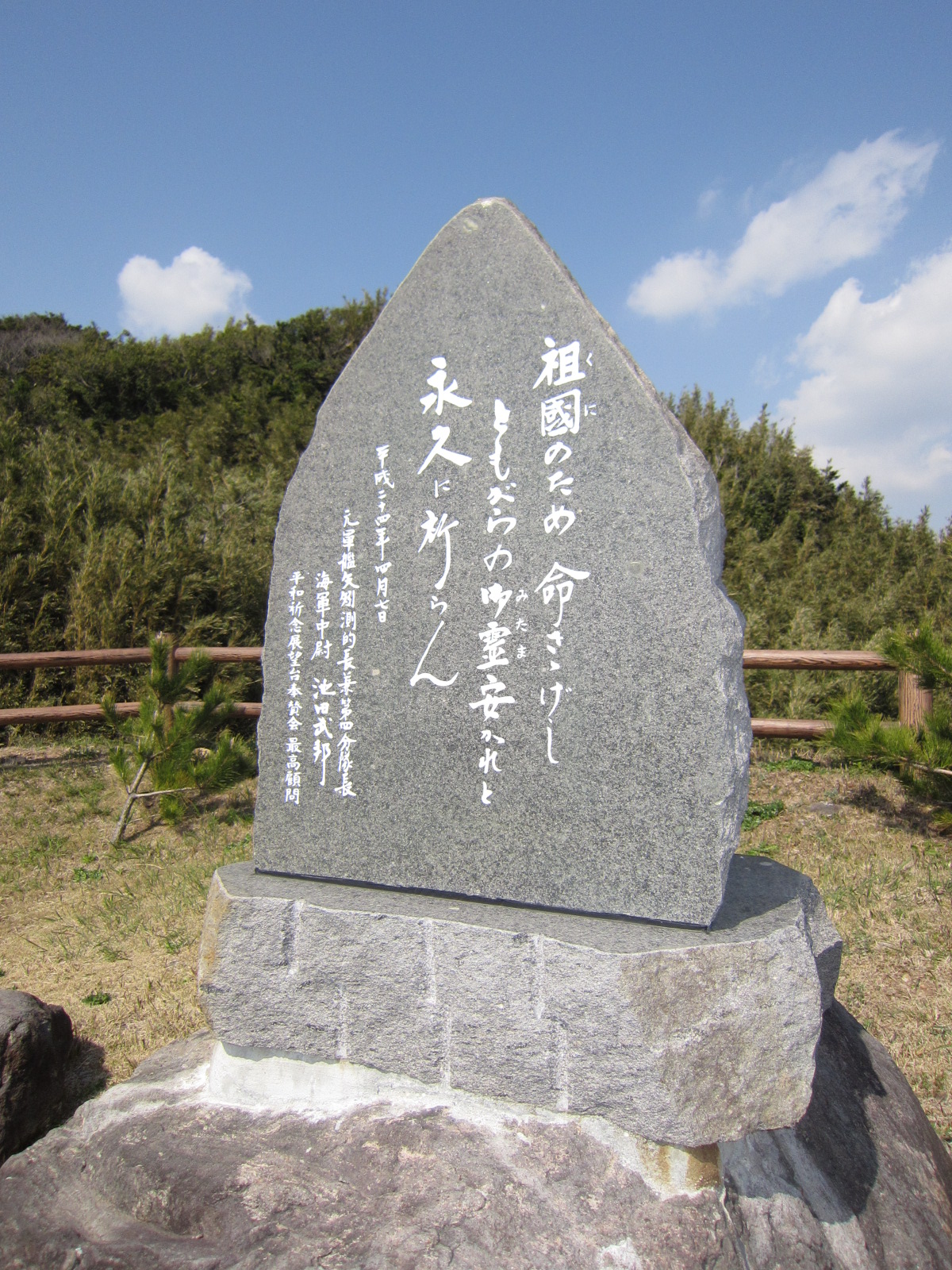戦争という歴史上の出来事を後世に語り継ぎ、幾多の殉国の英霊に感謝し、その御霊を永久に供養するとともに、世界の繁栄と平和を願うために、平成7年に「平和祈念展望台」が建立されました。以来毎年4月7日に、平和祈念展望台奉賛会(民間の団体)の主催により、「第二艦隊追悼式」を開催してまいりましたが、平成24年をもちまして終了しました。